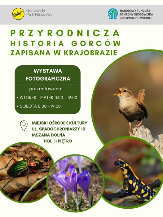 Wystawa powstała w ramach projektu „Bioróżnorodność w krajobrazie Gorczańskiego Parku Narodowego" realizowanego dzięki dofinansowaniu Narodowego Funduszu Ochrony Środowiska i Gospodarki Wodnej.