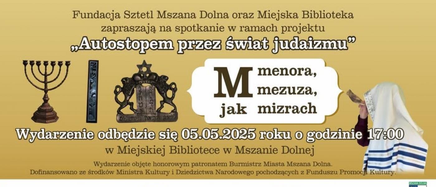 W poniedziałek, 5 maja o godz. 17:00 Fundacja Sztetl Mszana Dolna we współpracy z Miejską Biblioteką w Mszanie Dolnej zaprasza na drugie spotkanie w projekcie "Autostopem przez świat judaizmu".