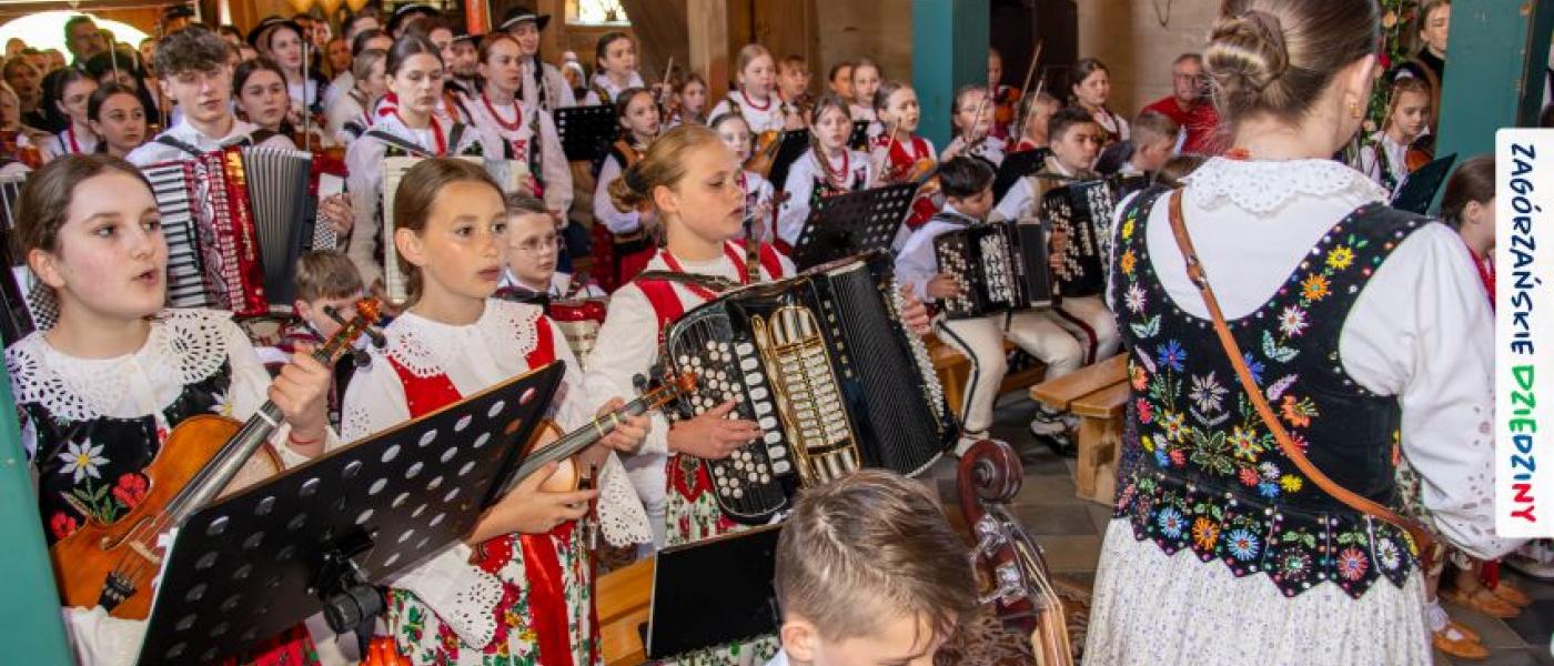 Paradnie ubrani Zagórzanie - dzieci, młodzież i dorośli, członkowie Zagórzańskiego Zespołu Folklorystycznego Dolina Mszanki - po brzegi wypełnili sobą, muzyką i śpiewem zabytkowy kościół p.w. św. Marii Magdaleny w Kasinie Wielkiej podczas kwietniowej Zagórzańskiej Mszy św.