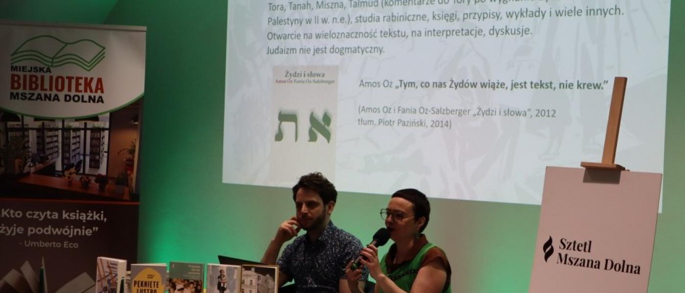 Menora, mezuza i mizrach były kolejnymi przystankami w projekcie „Autostopem przez świat judaizmu” Fundacji Sztetl Mszana Dolna. Podczas spotkania, które odbyło się w poniedziałek, 5 maja w Miejskiej Bibliotece, te trzy ważne przedmioty kultu, religii i kultury żydowskiej, zostały omówione.