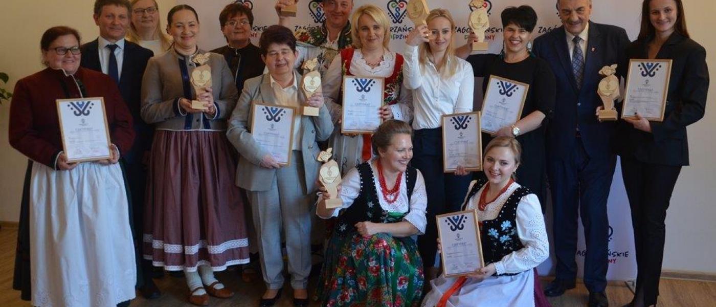 PIERWSI UŻYTKOWNICY ZNAKU PROMOCYJNEGO ZAGÓRZAŃSKIE DZIEDZINY ODEBRALI CERTYFIKATY I STATUETKI