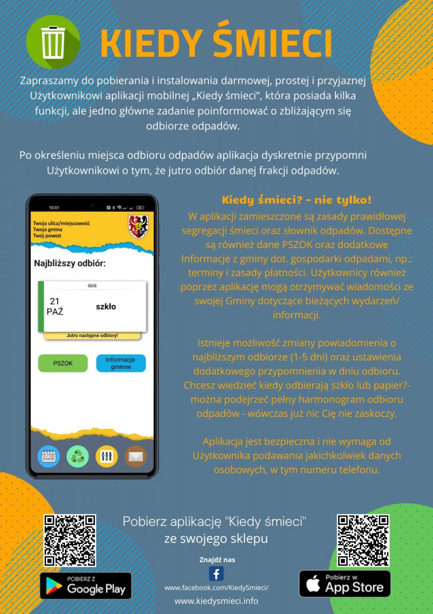 W celu ułatwienia właścicielom nieruchomości oraz mieszkańcom dostępu do aktualnego harmonogramu odbioru odpadów komunalnych uruchomiona została DARMOWA aplikacja "Kiedy śmieci".