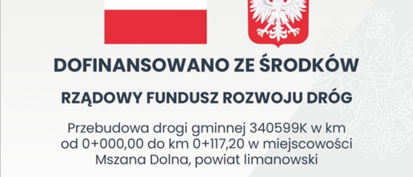 „Przebudowa drogi gminnej 340599K w km od 0+000,00 do km 0+117,20 w miejscowości Mszana Dolna, powiat limanowski.”