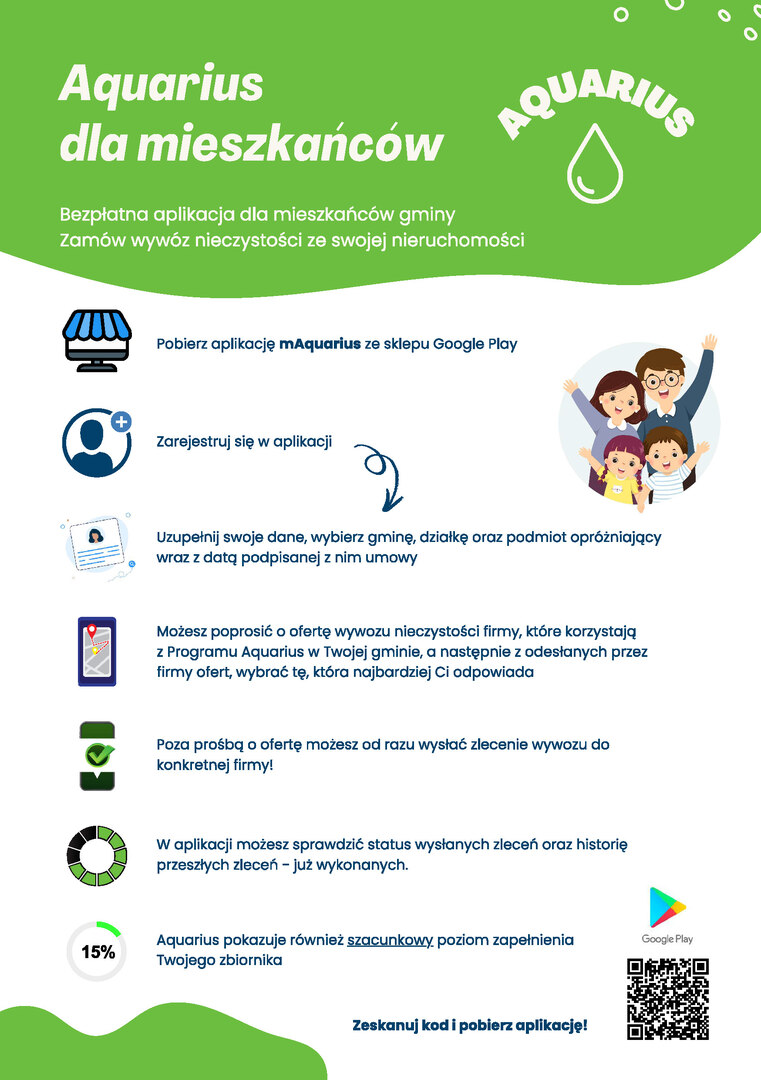 Szanowni Mieszkańcy, w związku z trwającymi kontrolami wywozu nieczystości ciekłych na terenie Miasta Mszana Dolna uprzejmie informujemy o możliwości korzystania z bezpłatnej aplikacji mobilnej „ mAquarius”, dzięki której mogą Państwo: